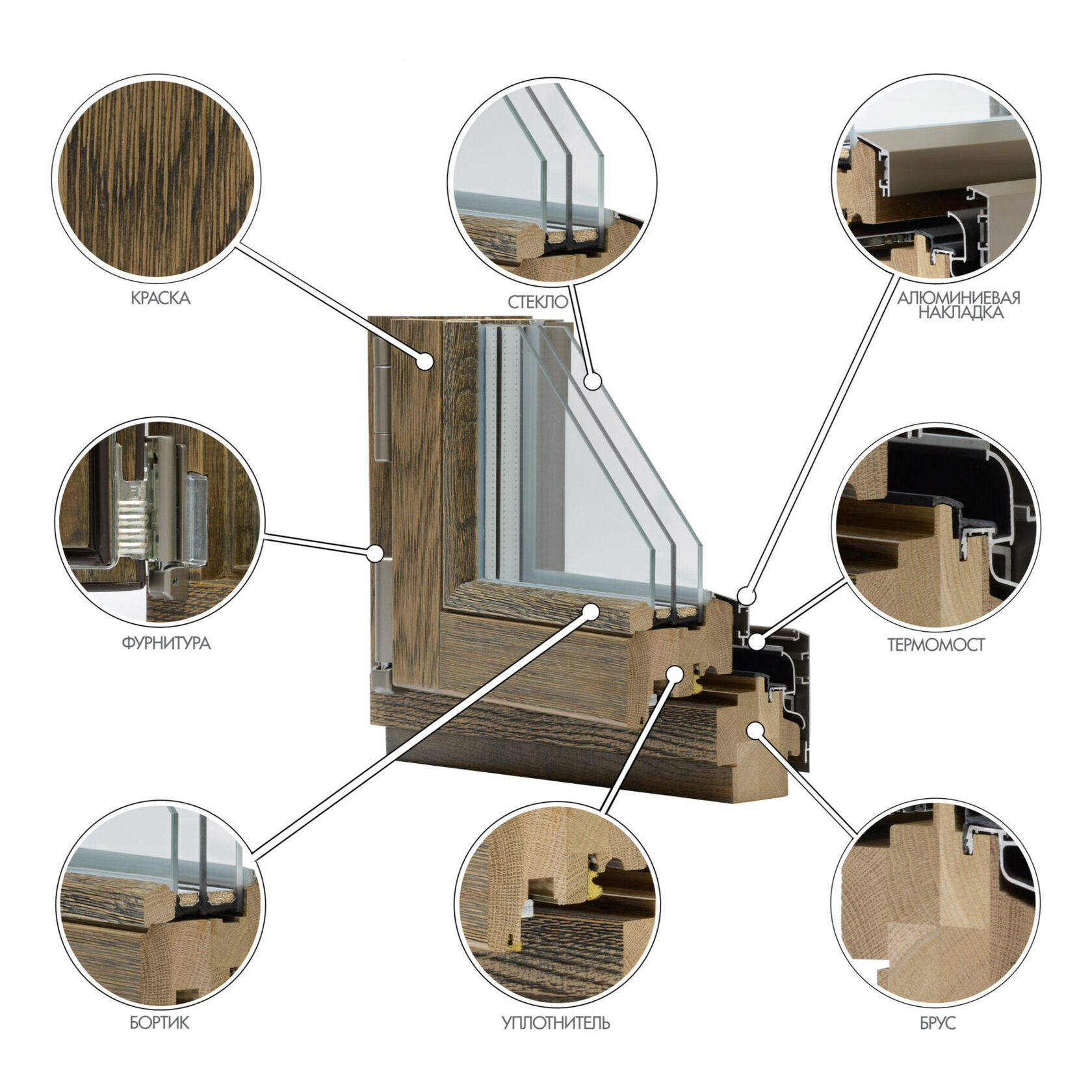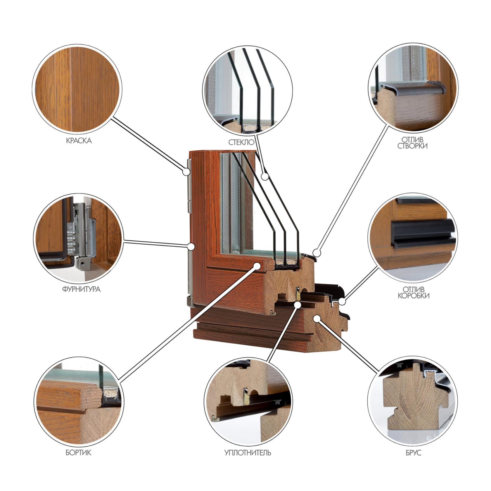 Благодаря широкой палитре цветов и разнообразию вариантов обработки дерева наши оконные конструкции могут стать несомненным комплиментом стилю любого дома.
